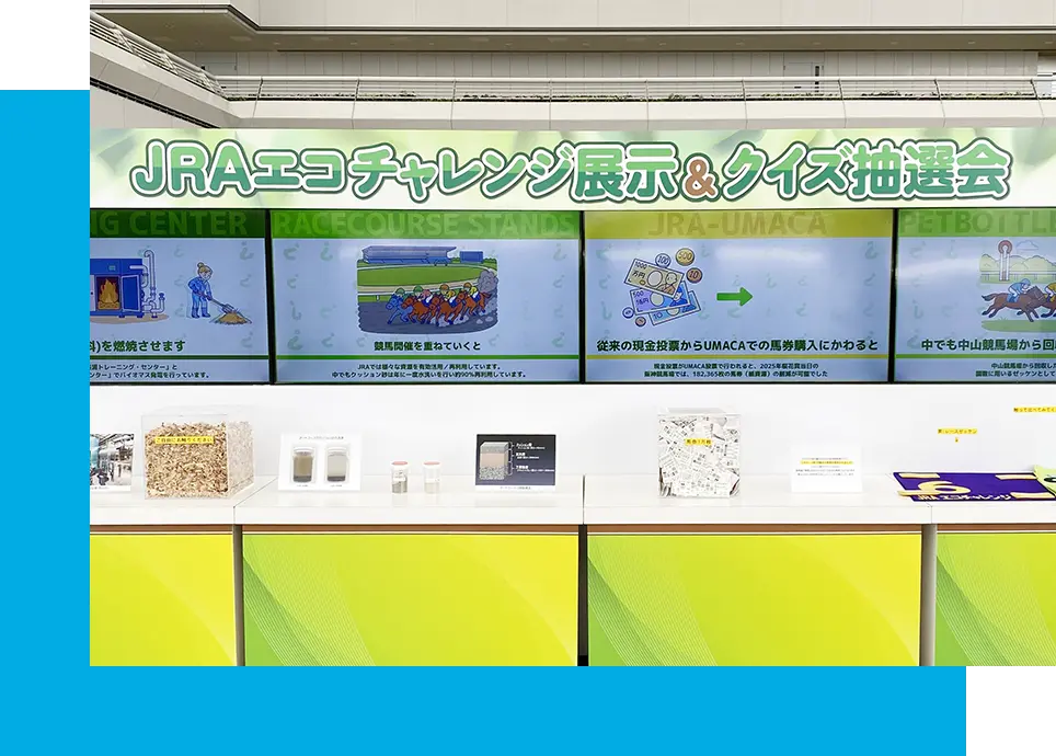 東京競馬場と阪神競馬場で実施された取組み『JRAエコチャレンジ』に当社も参加しました。様々な展示やJRASSグッズが当たる抽選会を通じて、環境への取組みを推進していきます。