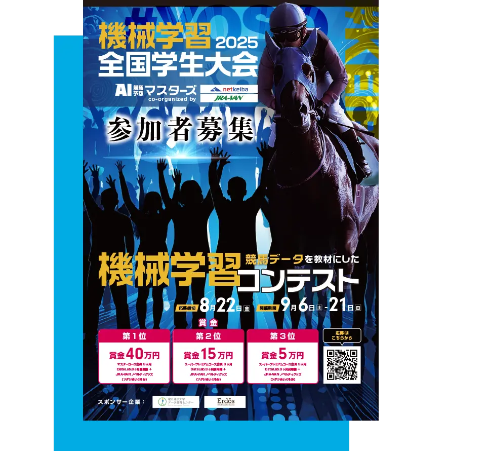 JRASSおよび(株)ネットドリーマーズ様の共催・電気通信大学データ教育センター様協賛により、「機械学習全国学生大会2025」を開催。当社は競馬データや入賞賞品提供等を行うことにより、理系学生の機械学習実践を促進し、IT人材の育成機会を創出しています。